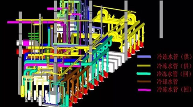 管線綜合策劃的重點(diǎn)是屋面、樓層走廊吊頂和地下室。設(shè)備機(jī)房(給水、消防泵房、空調(diào)機(jī)房、變配電室、換熱站)、給排水管道井、管廊、吊頂內(nèi)、衛(wèi)生間、設(shè)備層、強(qiáng)電井、弱電井、空調(diào)井等部位重點(diǎn)進(jìn)行排布策劃。