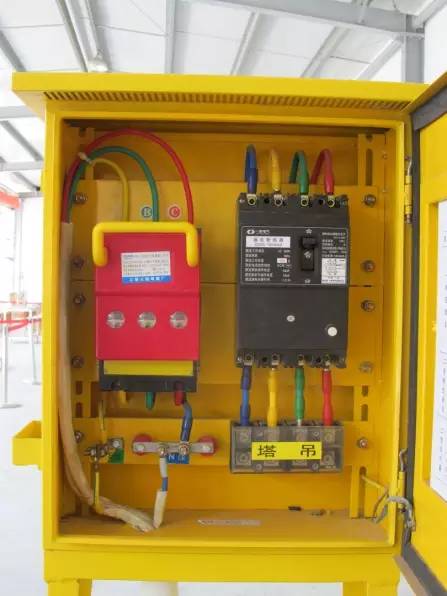 5、總配電箱的電器具備電源隔離,正常接通與分?jǐn)嚯娐罚约岸搪贰⑦^(guò)載、漏電保護(hù)功能。(JGJ46-2005第8.2.2條)