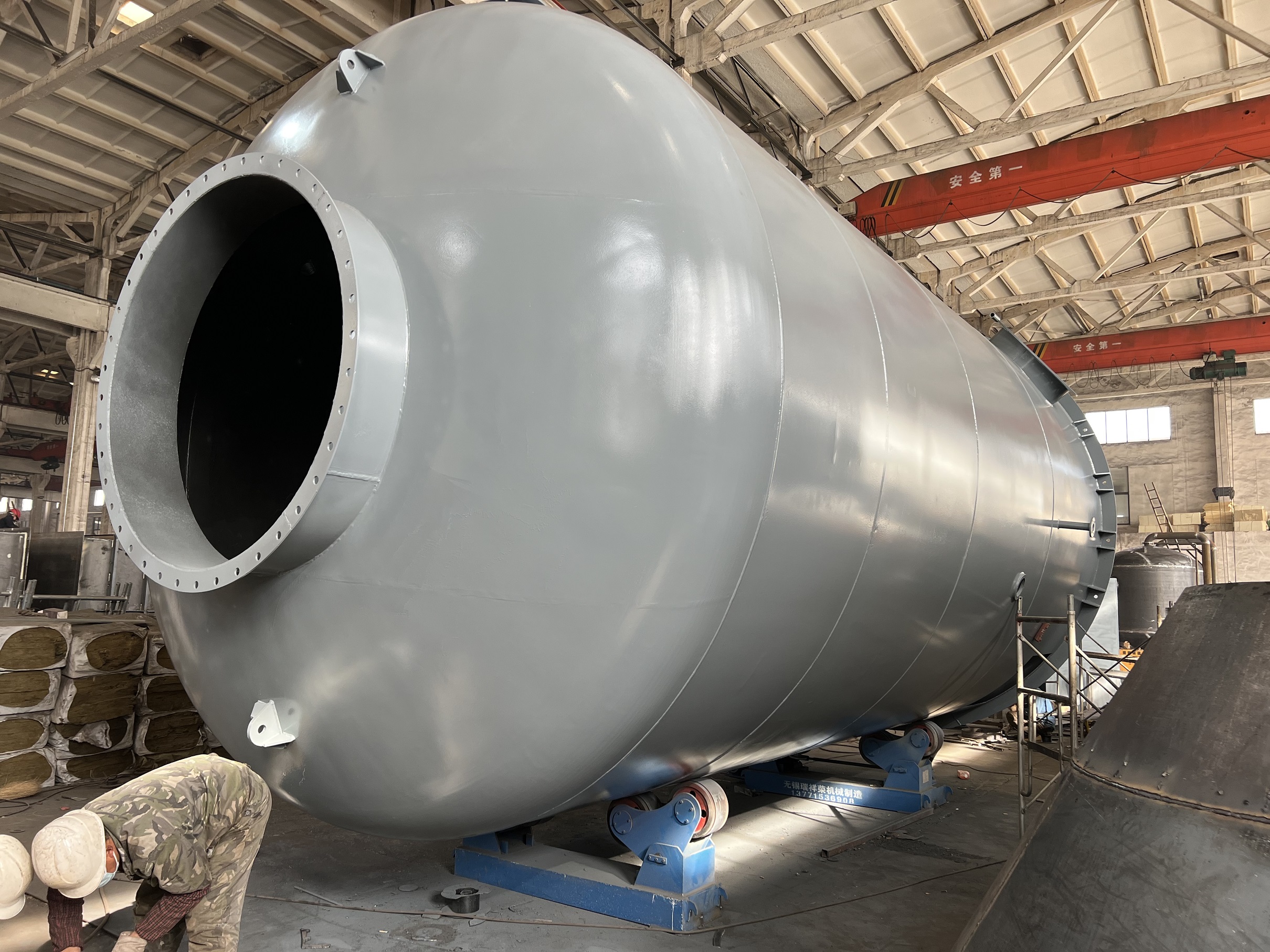 目前整個項目甲供設備均已經安裝完畢,我們制作的三個塔和兩個煙囪均已經就位安裝好。占比70%的布置三區(qū)風管基本完成,其他區(qū)風管也基本加工完成。水管,電氣這塊,年后上來安裝。計劃在明年2月底整個項目投產運行。