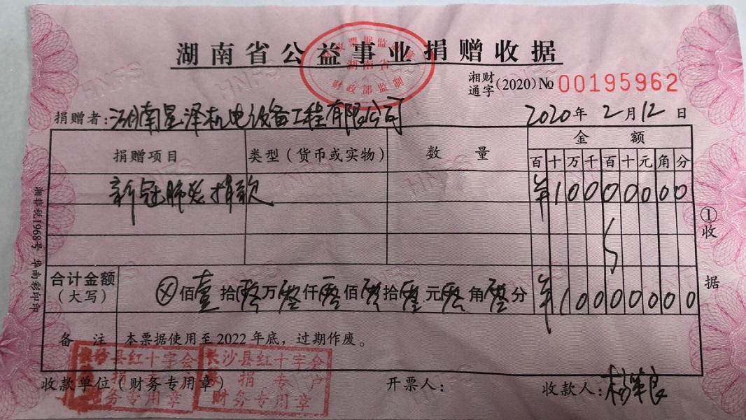 在全國(guó)人民共同抗擊新冠肺炎疫情的戰(zhàn)斗中,湖南星澤 機(jī)電設(shè)備工程有限公司心憂天下,情系疫情,時(shí)刻在想能為疫情做點(diǎn)什么,能為社會(huì)擔(dān)當(dāng)什么。按照黨中央指示:號(hào)召全國(guó)人民堅(jiān)定信念,同舟共濟(jì),科學(xué)防治,精準(zhǔn)施策,一定要打贏這場(chǎng)疫情防控的整體戰(zhàn),確保中國(guó)經(jīng)濟(jì)發(fā)展良好勢(shì)頭。星澤人大義凜然,勇于擔(dān)當(dāng),黨支部書記帶頭,動(dòng)員廣大黨員和員工為國(guó)分憂,為社會(huì)擔(dān)責(zé),本次向長(zhǎng)沙縣紅十字會(huì)捐款拾萬(wàn)元,彰顯星澤對(duì)社會(huì)的責(zé)任和星耀神州,惠澤人類的初衷使命。更是對(duì)不忘初心,牢記使命最好的詮釋。