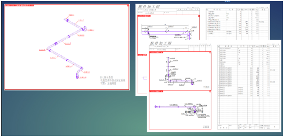 3) 導(dǎo)出管道分段加工圖紙和下料圖,并將圖紙交付工廠照圖加工預(yù)制,加工完成后按照現(xiàn)場施工節(jié)點(diǎn)逐次進(jìn)場,進(jìn)行裝配。