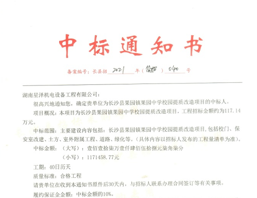 “尊敬的湖南星澤 機(jī)電工程有限公司,很高興地通知您......"