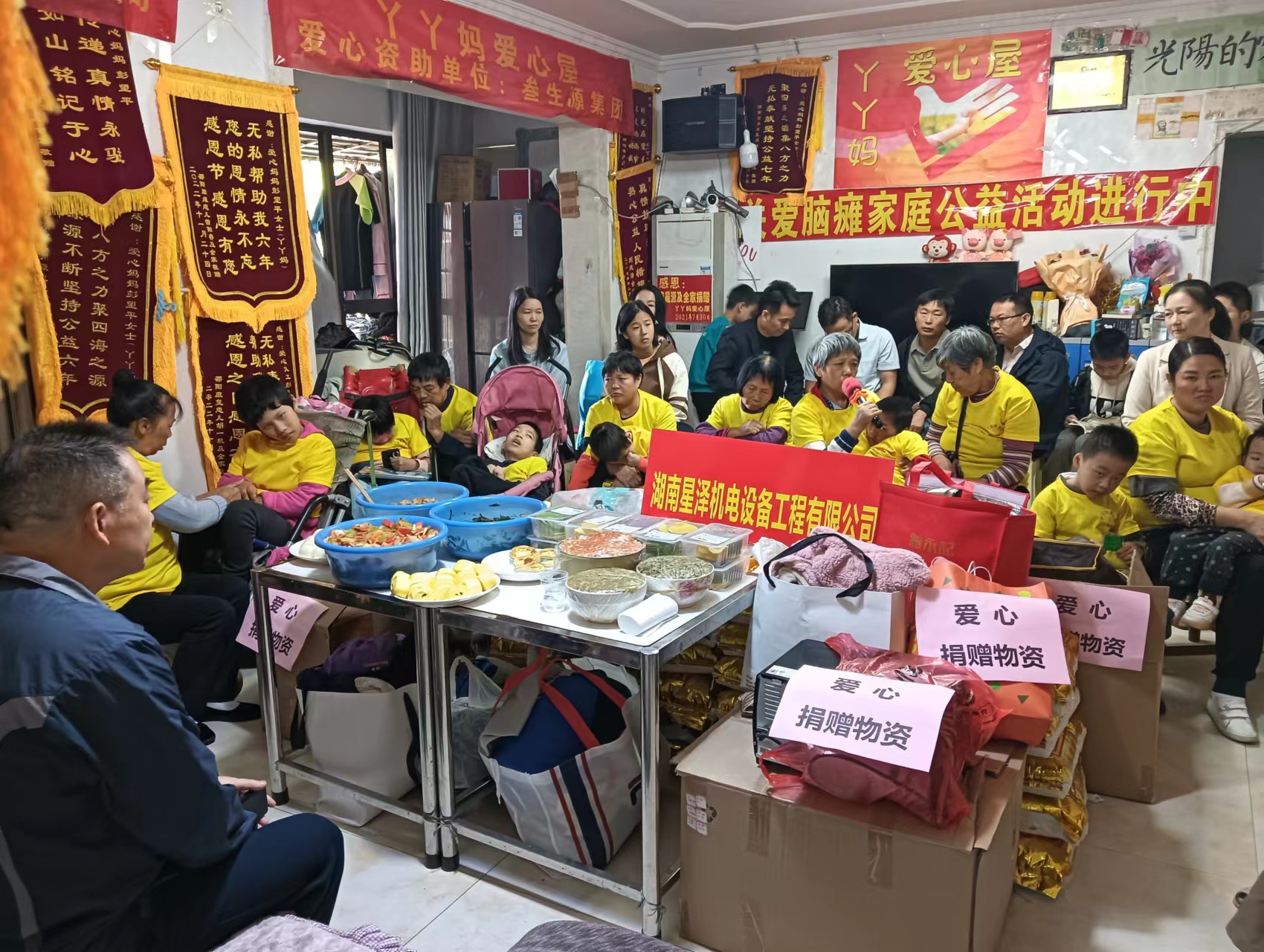 公司全體員工在孫逢春總經(jīng)理的帶領(lǐng)下,前往長沙縣湘龍街道“盛地春天里”關(guān)愛腦癱兒童公益組織“丫丫媽媽愛心屋”,看望在這里做康復(fù)治療的“慢天使”,慰問這些困難腦癱患兒家庭。公司為他們帶來了大米、肉、抽紙、衣物、鞋子、生活用品等生活物資并和這些患兒家屬一起包餃子,共進(jìn)午餐,為他們獻(xiàn)出一份自己的一份愛,將這份愛傳遞給小朋友們!