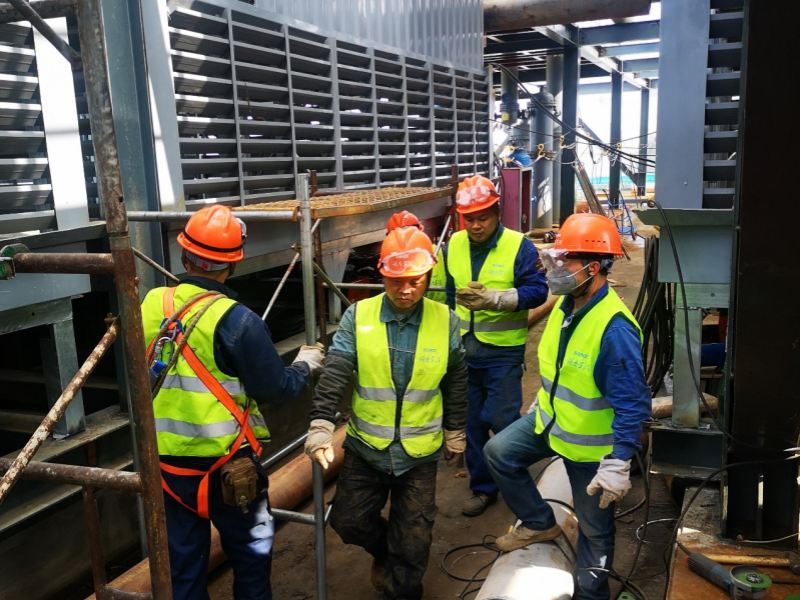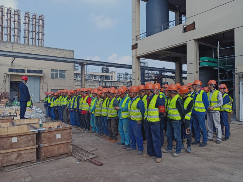 項(xiàng)目經(jīng)理粟逵介紹鋼結(jié)構(gòu)平臺(tái)、各種塔器罐體、各類工藝管道、電動(dòng)閥門,電氣儀表自動(dòng)控制工藝的紛繁復(fù)雜,工程量之巨大,現(xiàn)場(chǎng)安裝與生產(chǎn)同時(shí)進(jìn)行的安全控制要求之嚴(yán)格,和一個(gè)煙頭罰款4000元的教訓(xùn),目前現(xiàn)場(chǎng)施工人員130人,因甲方設(shè)備供貨進(jìn)度延后還沒有達(dá)到200多人施工高峰,無論條件變化,星澤這支隊(duì)伍個(gè)個(gè)都是行家俚手,經(jīng)驗(yàn)豐富的干將,對(duì)工藝管道設(shè)備安裝技術(shù)輕車熟路,來之能戰(zhàn)、戰(zhàn)之能勝,有能力完成客戶交付的任務(wù)。