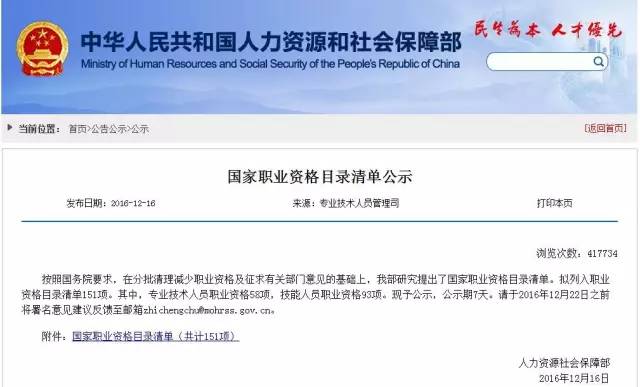 國(guó)家職業(yè)資格目錄公示
