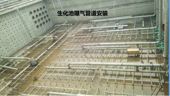 o 在生化池內(nèi)安裝曝氣膜塊支架。