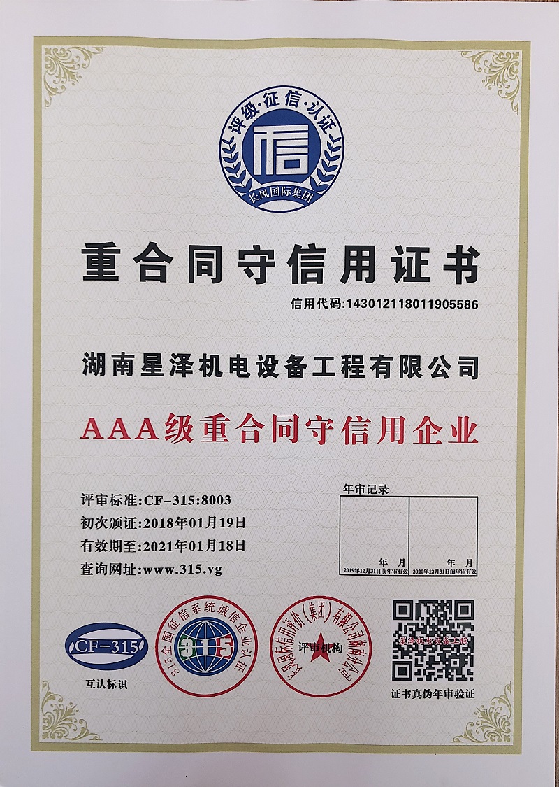 國家權(quán)威機構(gòu)通過認證、審查針對我公司的信用記錄、經(jīng)營狀況、財務(wù)指標、發(fā)展前景,結(jié)合國家及地方政府相關(guān)政策及現(xiàn)狀、本著公平、公正、獨立、客觀、科學(xué)的原則,評定我公司綜合信用等級為:AAA級