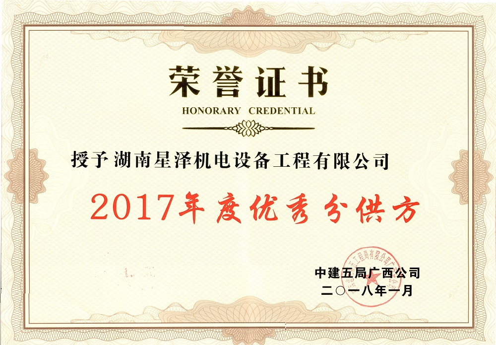 2018年,1月,我司憑借專業(yè)的施工水平、科學(xué)的項(xiàng)目管理模式以及積極良好的服務(wù)態(tài)度,被中建五局廣西分公司評(píng)為優(yōu)秀分供方!